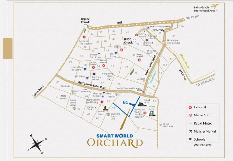 Orchard , a new residential project located in Sector 61, Gurgaon. Experience the luxury of 2&3 BHK Low Rise apartments with stunning views and top-notch amenities. This upscale community is designed to cater to the needs of sophisticated residents, providing impressive facilities and unmatched comforts. Enjoy the benefits of a gated community, including round-the-clock security, well-designed common areas, and a vibrant social atmosphere. With its prime location, the luxury apartments at Sector 61 offer excellent connectivity to renowned educational institutions, shopping centers, and IT hubs. Get ready to embrace a refined lifestyle surrounded by people like you.
